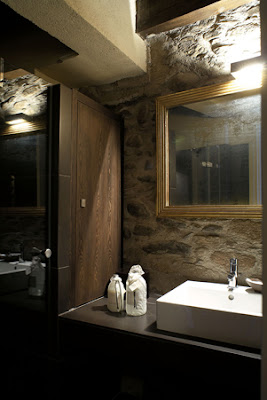 per una casa resa suggestiva dalle luci e dai materiali usati: pietra, ferro, cemento.
